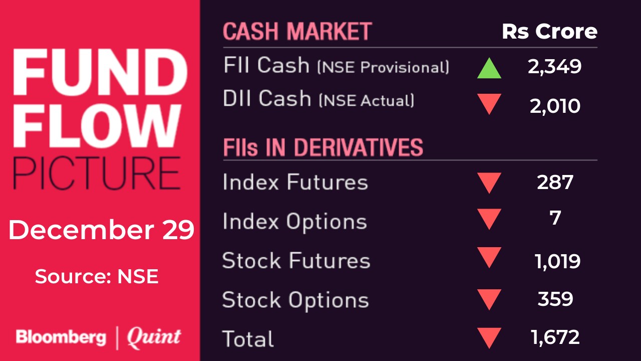 - Nifty Bank December futures ended at 31,366; premium of 44 points