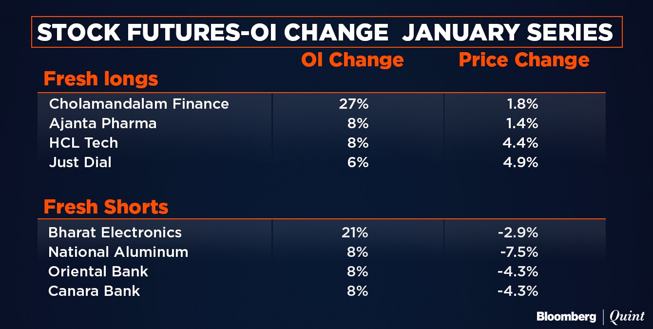 - Jan. Series: Nifty open interest up 1 percent; Bank Nifty open interest down 8 percent.