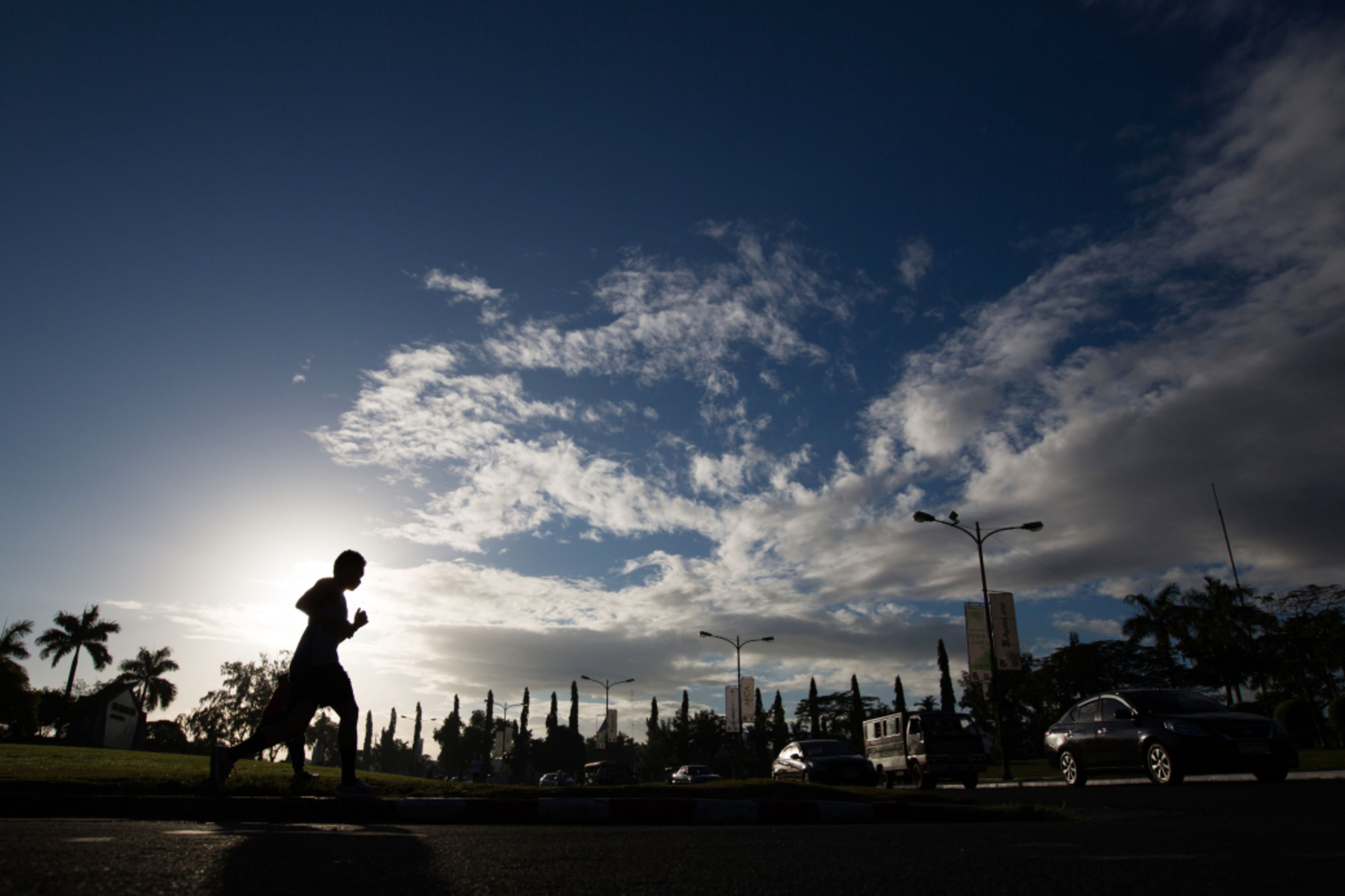 A man is silhouetted while jogging in the morning. (Photographer: SeongJoon Cho/Bloomberg)
