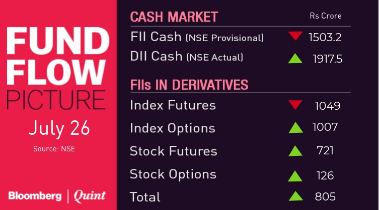 - Bank Nifty August futures closed at 29,465, premium of 140 points versus 158 points.