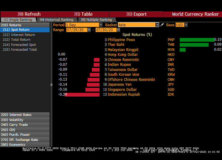 The Bloomberg Dollar spot index is set for its worst month in a decade. The GDP data also resulted in a gain in treasuries.