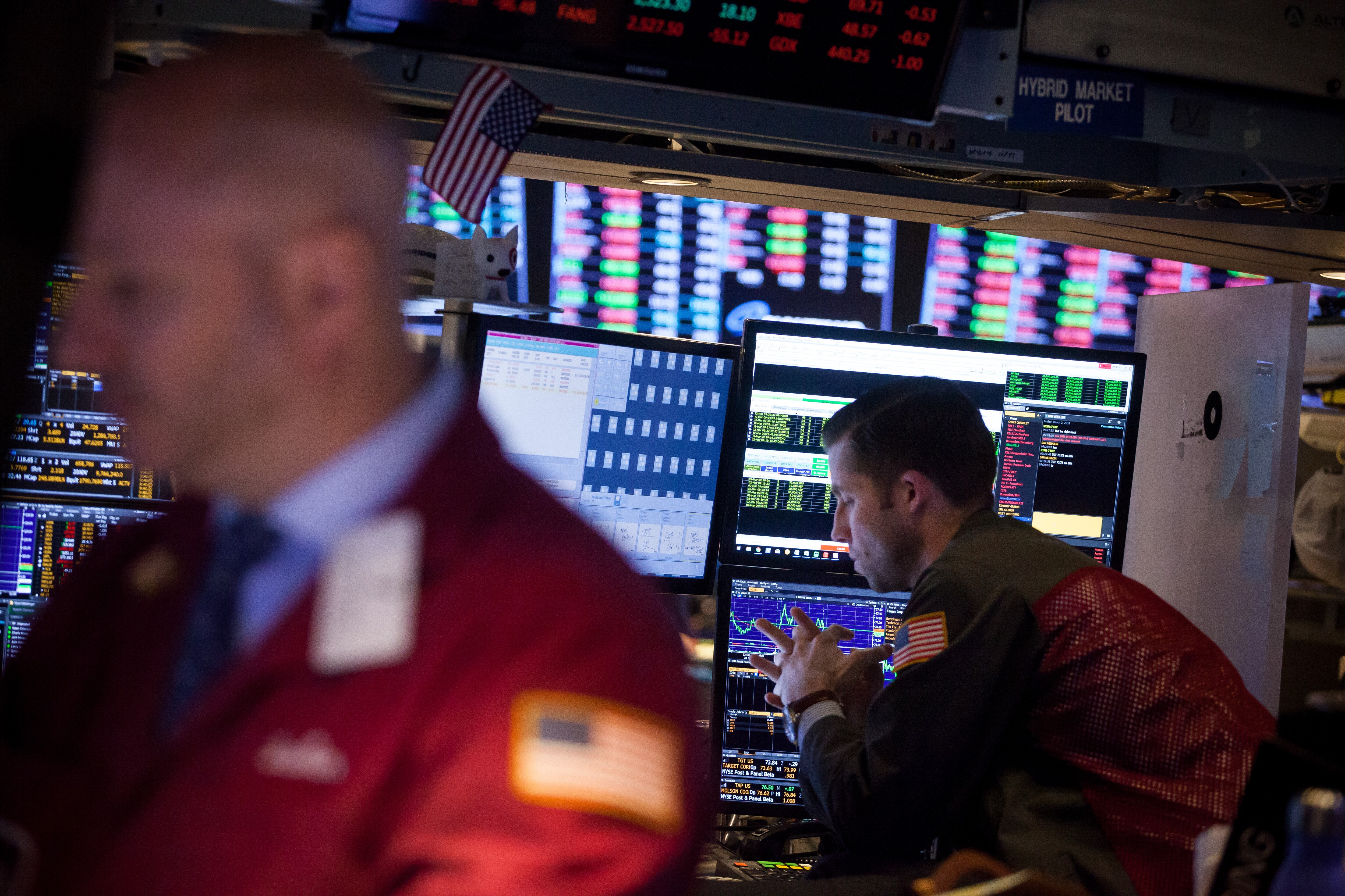 Traders work on the floor of the New York Stock Exchange in New York, U.S. (Photographer: Michael Nagle/Bloomberg)