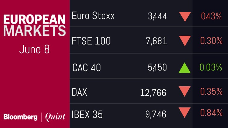 - European stocks fell as U.S. shares opened lower and investors eyed a tense G-7 summit.