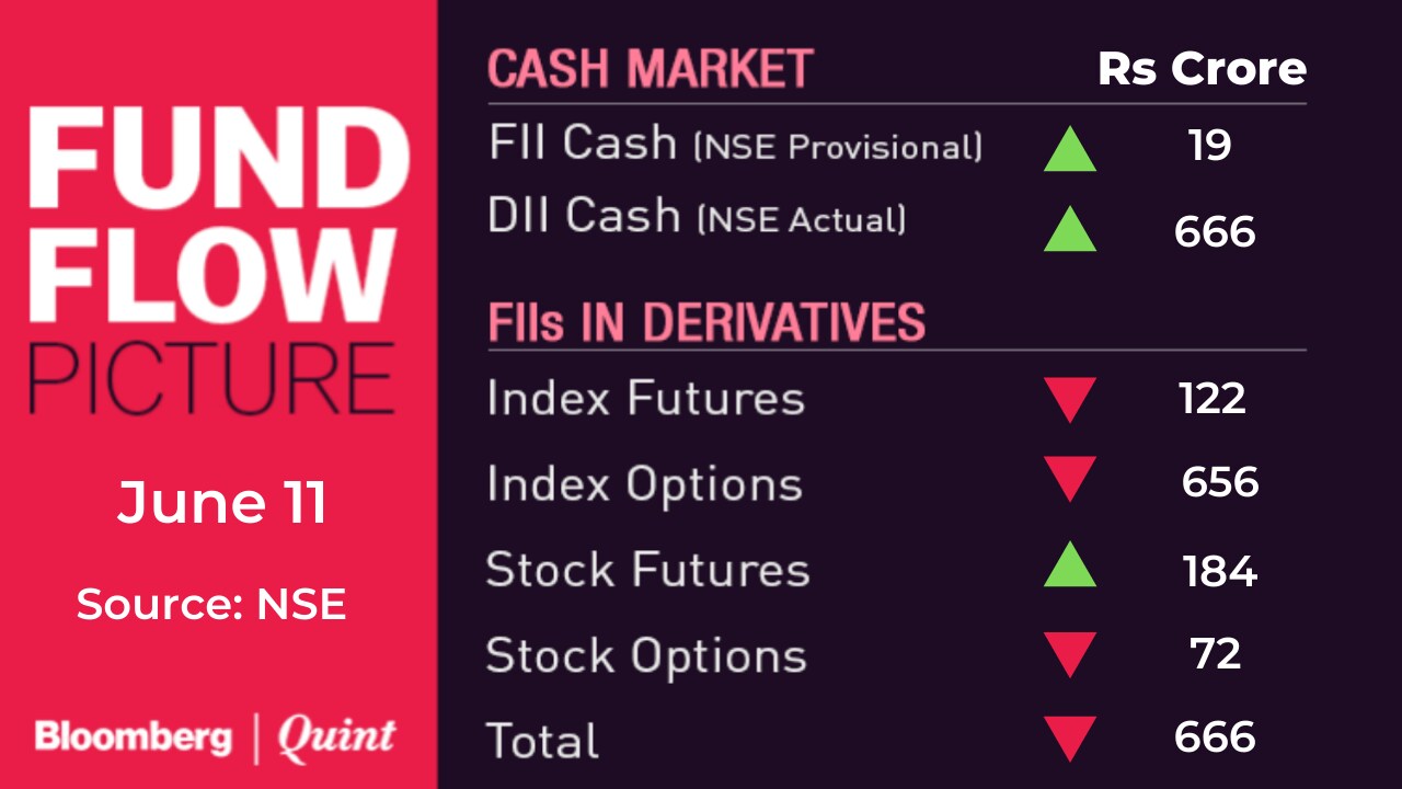 - Nifty Bank June futures ended at 35,164; premium of 116.6 points