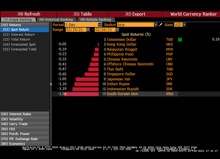 - For the week, the rupee was the third worst performing currency among its peers in Asia.