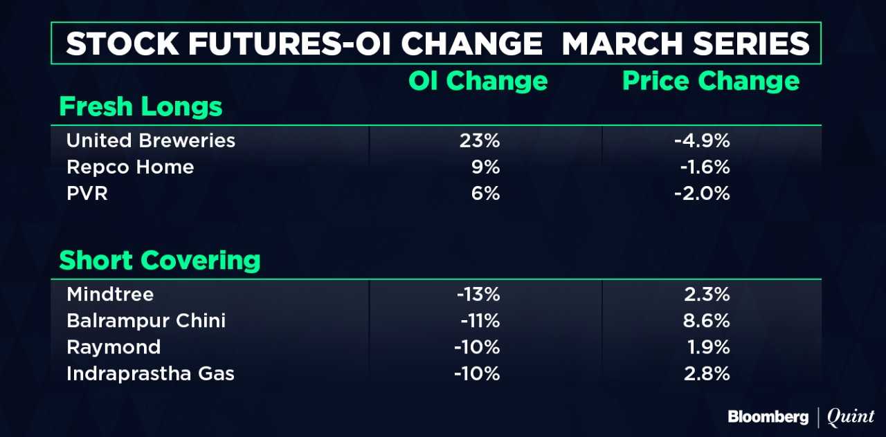 - March series: Nifty open interest down 1 percent, Bank Nifty open interest down 4 percent.