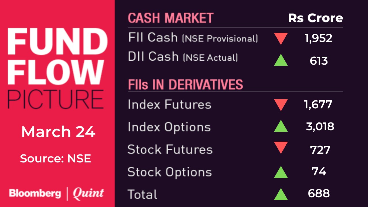 - Nifty Bank March futures ended at 33,407; premium of 114 points