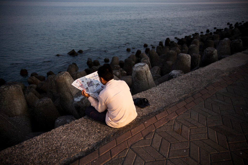 A man reads a newspaper near Nariman Point in Mumbai, India (Photographer: Brent Lewin/Bloomberg)