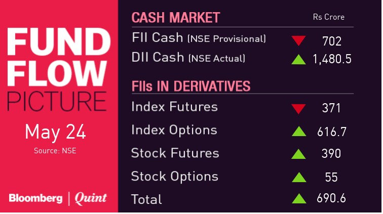 - May series: Nifty open interest down 2 percent; Bank Nifty open interest down 1 percent.