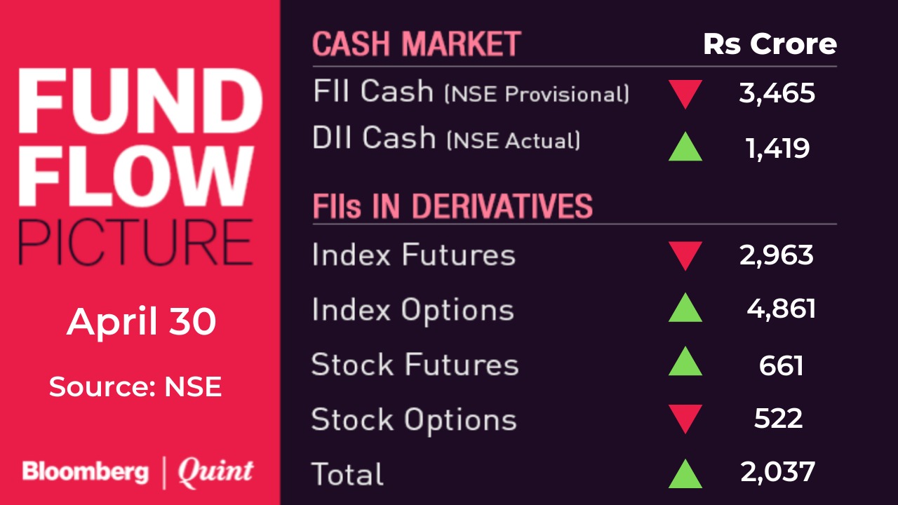 - Nifty May futures ended at 14,660.35; premium of 29.25 points.
