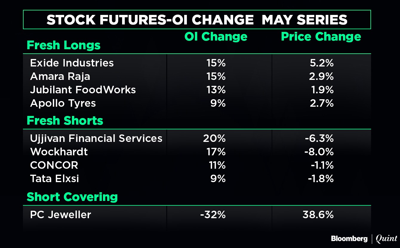 - Max open interest for May series at 10,500 (open interest at 51.7 lakh, up 8 percent)
