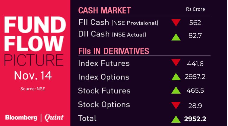 - Nifty Bank November futures closed at 30,770.5, premium of 20.6 points versus 44 points