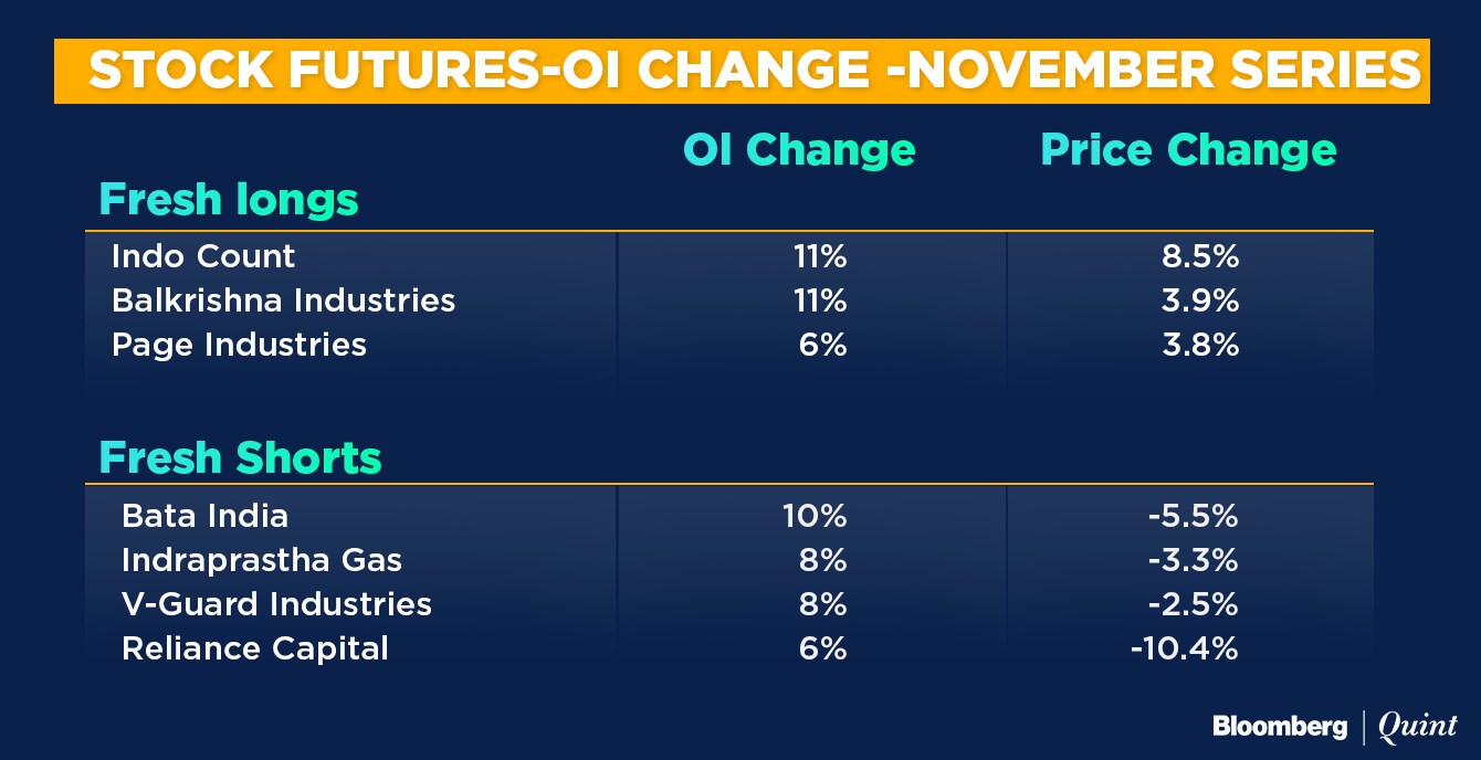 - November contracts: Nifty open interest down 2 percent; Bank Nifty open interest down 1 percent.