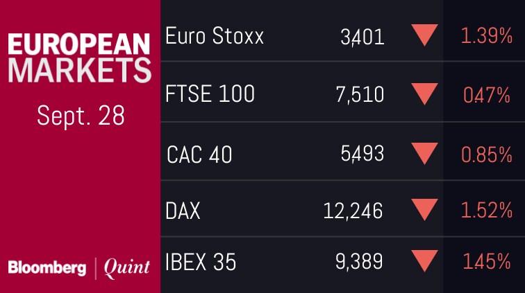 - European equities fell for the first time in four days as worries about the budget deficit proposed by Italy's populist leaders soured sentiment amid fears the target threatens the country's financial stability.