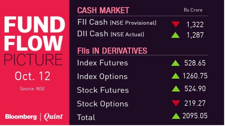 - Nifty October open interest down 2.3 percent; Nifty Bank October open interest up 4 percent.