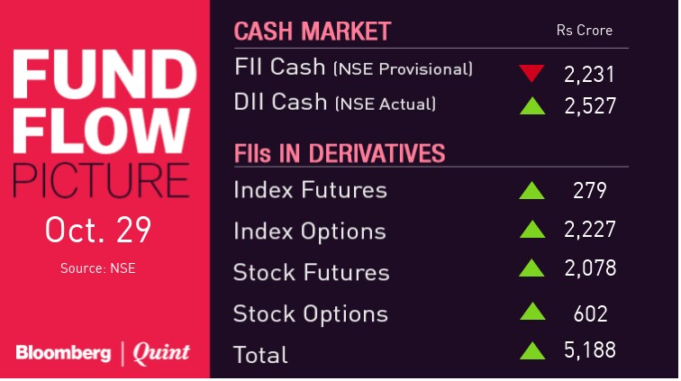 - Nifty October futures closed trading at 10284, premium of 24 points