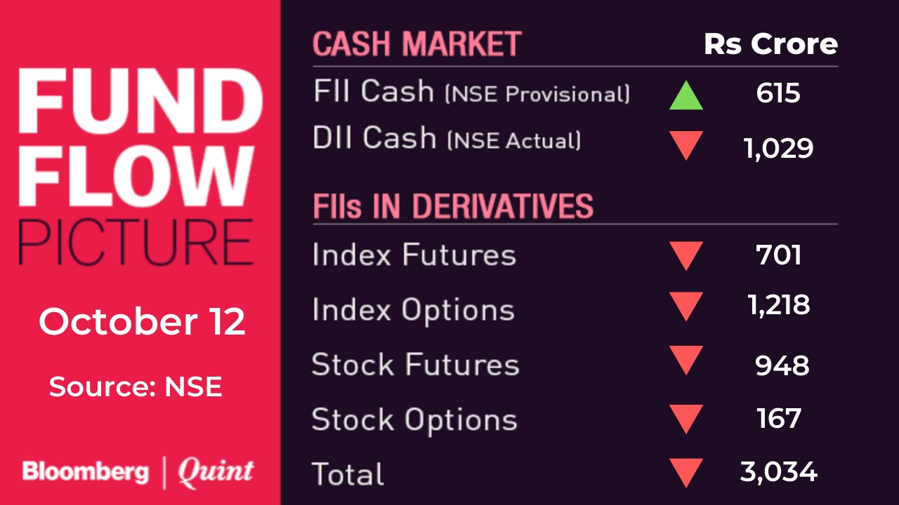 - Nifty Bank October futures end at 23,769; premium of 56 points from 105 points