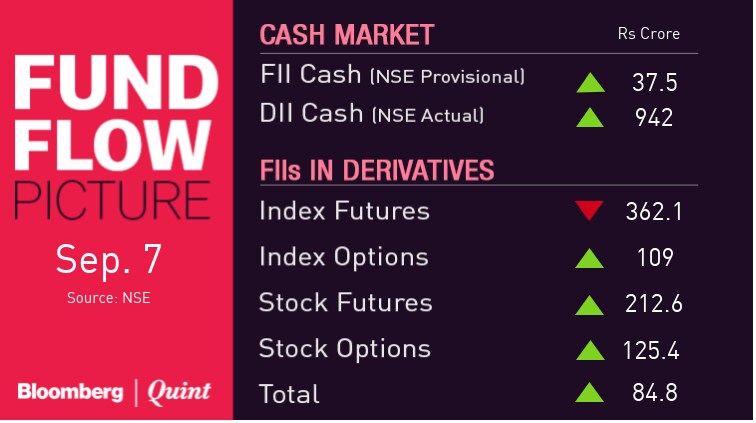 - Nifty September Futures closed trading at 11,632.9 premium of 43.8 points versus 30 points