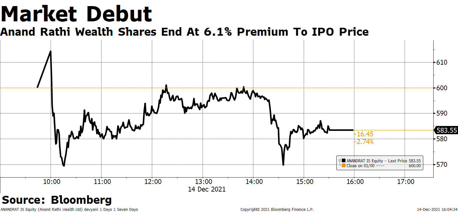 Shares of Anand Rathi Wealth Ltd. listed at a premium on market debut after its Rs 660-crore initial public offer saw healthy investor demand.