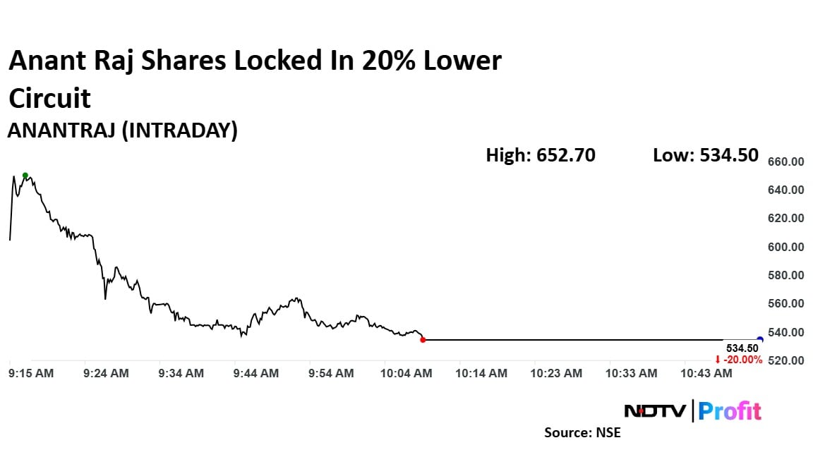 Anant Raj Ltd. has been a darling of the data centre driven stock lovers. However, the stock is trading under pressure over last two sessions. The stock was down almost 20% on Tuesday after falling 18% on Monday.