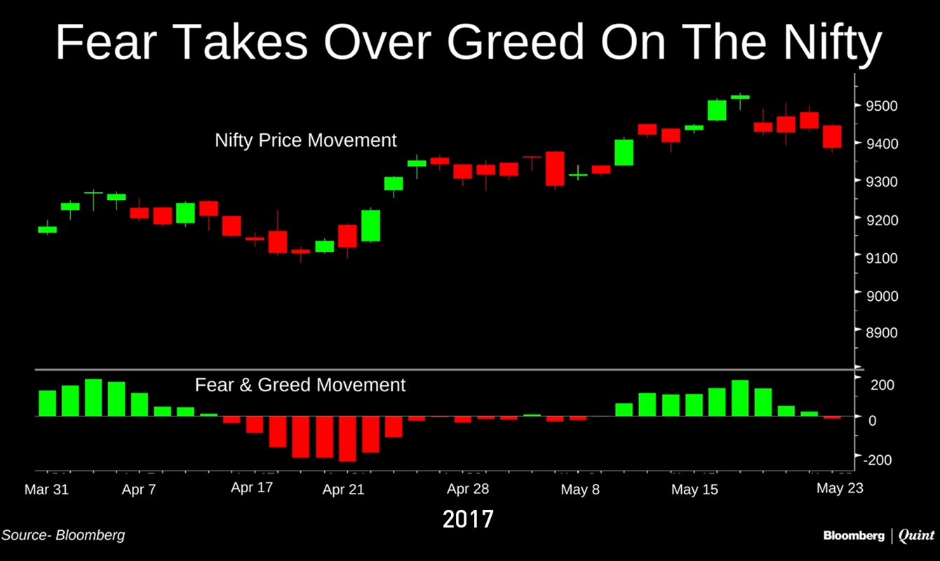 With that investors' greed—that is their appetite for taking risks—has now been overcome by fear of losing some of their gains. That's according to Bloomberg's proprietary Fear & Greed indicator.