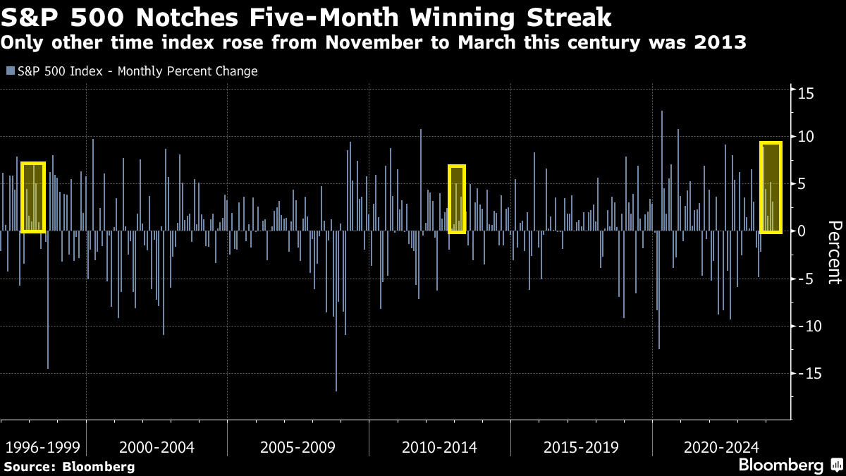 The gains in the region came after traders sent the S&P 500 to its 22nd record this year on the back of data showing the US economy remained healthy. A $4 trillion surge in US equity values in just three months has startled doomsayers, while leaving a host of strategists scrambling to update their 2024 targets.