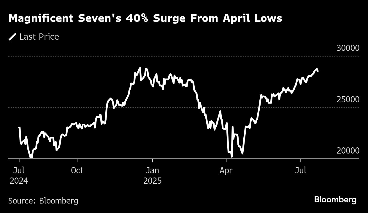 The Magnificent Seven companies are expected to post a combined 14% rise in second-quarter profits, while earnings for the rest of the US equity benchmark are predicted to be relatively flat, according to Bloomberg Intelligence data.
