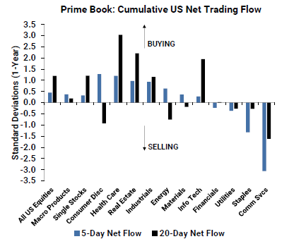 After four weeks of selling, hedge funds last week piled into consumer discretionary stocks, which saw the largest net buying during the week ended May 3, according to data compiled by Goldman Sachs Group Inc.'s prime brokerage desk. The move was driven by long buys as well as the largest short covering since December 2023.