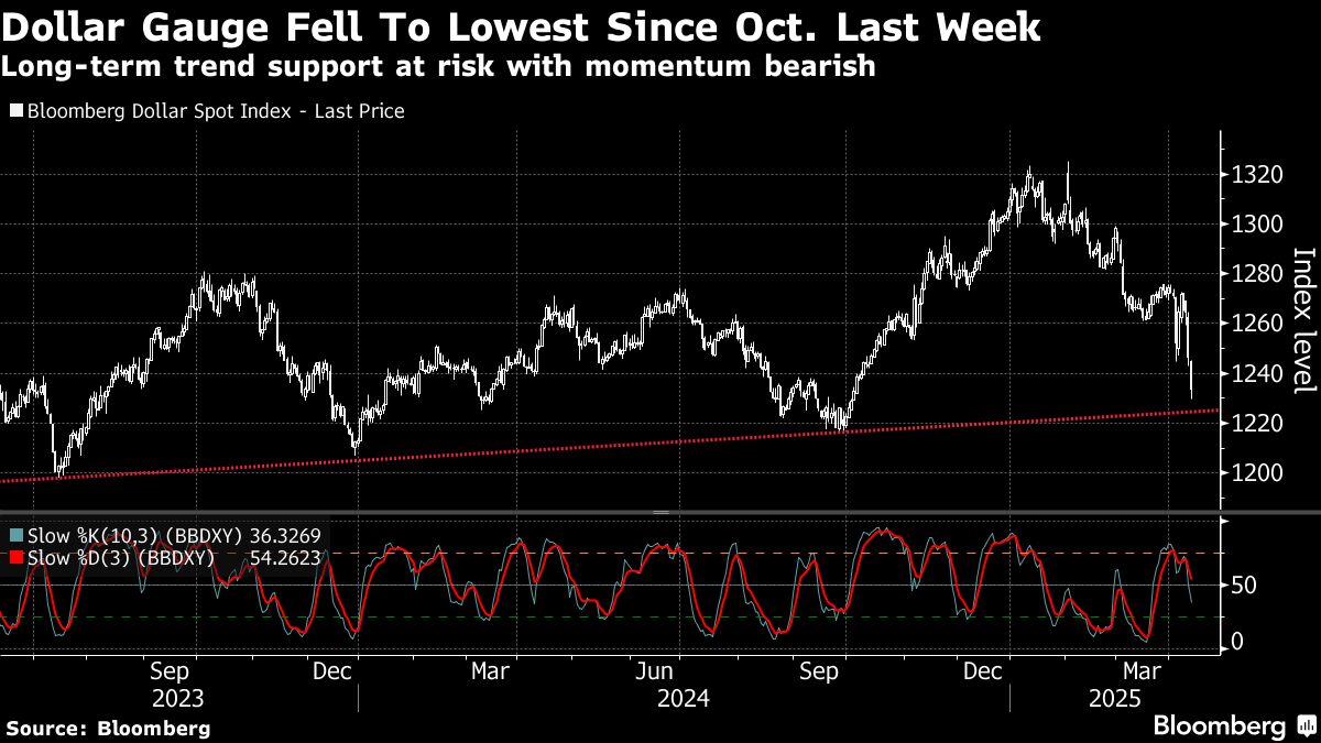 Demand for hedging against potential dollar declines jumped to a five-year high as the Trump administration's tariff policies threaten to sap US economic exceptionalism and undermine the greenback. Citigroup Inc.'s equity strategists downgraded US stocks citing reasons include trade tensions.