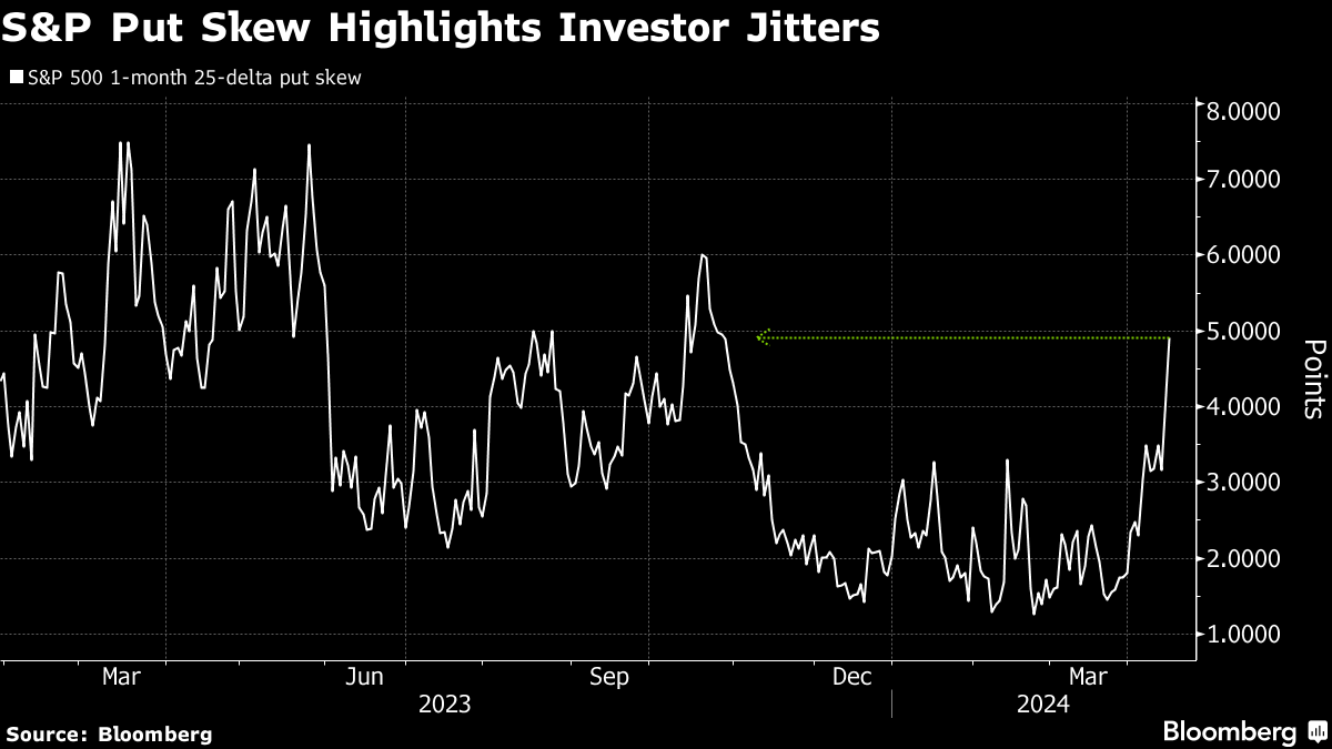 In a volatile session, the S&P 500 erased an earlier advance and fell over 1%. Microsoft Corp., Apple Inc. and Nvidia Corp. led declines in the rate-sensitive technology space. Volatility perked up, with the premium for one-month put options to protect against a pullback in US equities hitting the highest since October. Wall Street's “fear gauge” — the VIX — hit levels unseen this year.