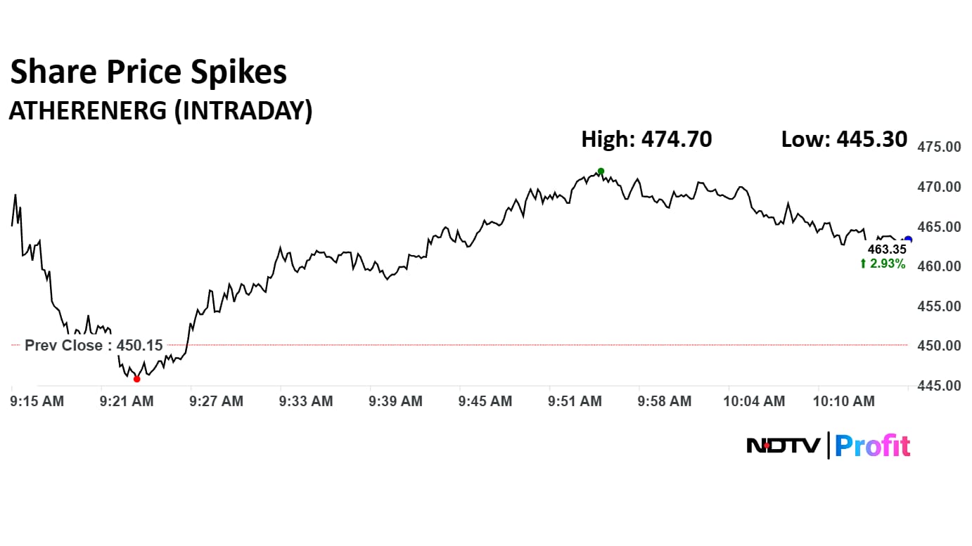 Ather Energy Ltd.'s share price spiked 5.45% on Monday, a day after co-founder Tarun Mehta said that achieving 20% market share is possible for the business in the near term.