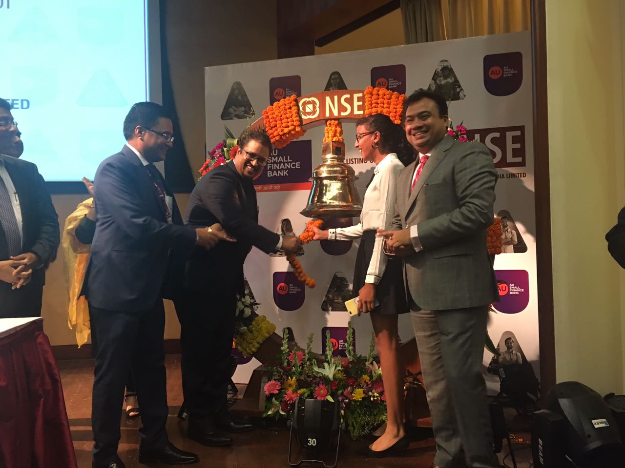 AU Small Finance Bank Ltd. listed at Rs 530, a 48 percent premium to its issue price, on the BSE.