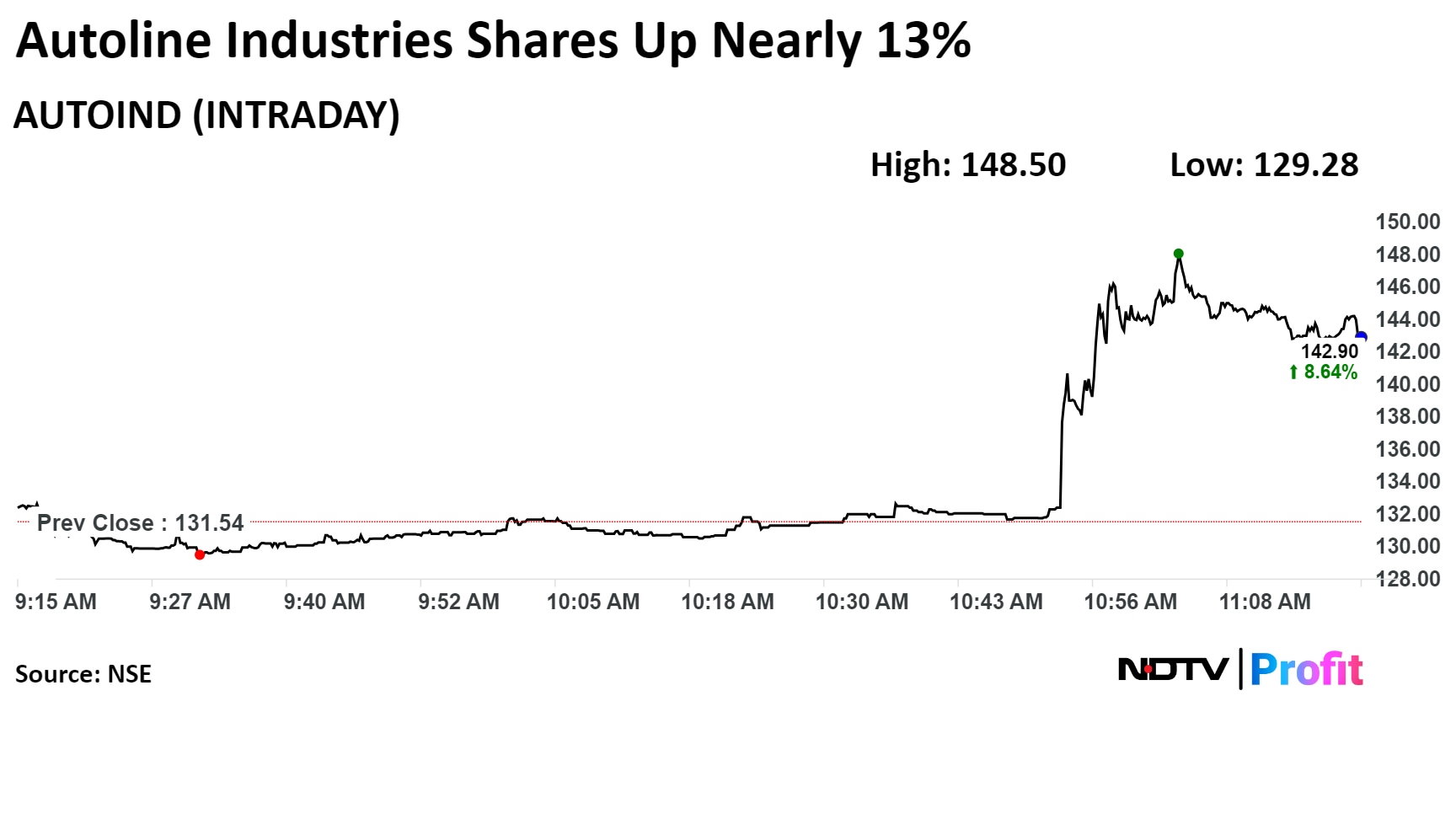 On the NSE, Autoline's stock rose as much as 12.89% during the day to Rs 148 apiece, the highest since Feb. 26, 2024. It was trading 8.71% higher at Rs 143 per share, compared to a 0.29% advance in the benchmark Nifty at 11:19 a.m.