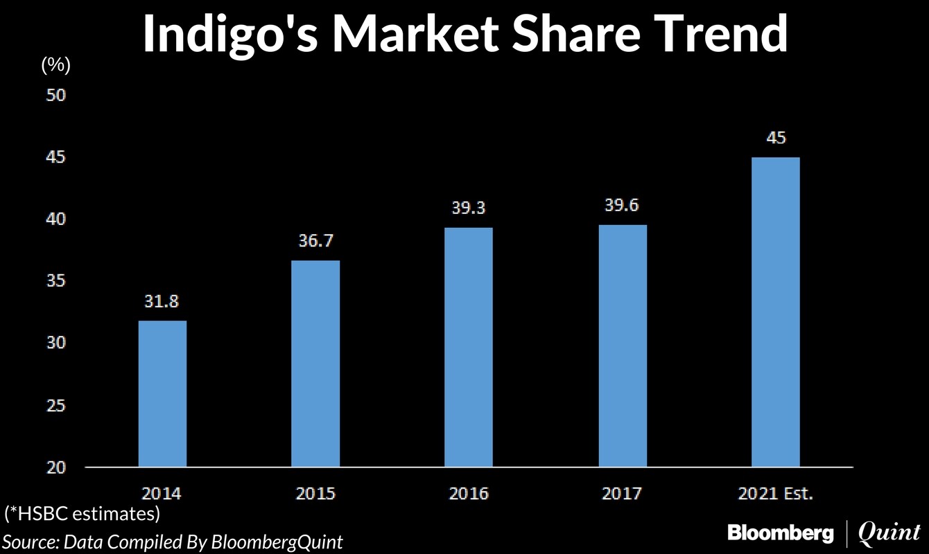 Indigo is a leading low-cost airline with nearly 40 percent domestic market share, which is further expected to increase by financial year 2020-2021, with around 450 aircraft on order, according to HSBC.