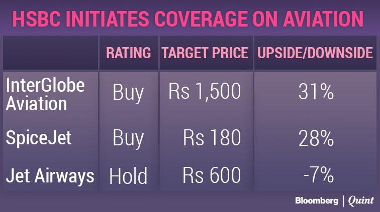HSBC has initiated coverage on all the three listed Indian carriers, with ‘Buy' rating on InterGlobe Aviation Ltd. and SpiceJet Ltd., while a ‘Hold' on Jet Airways (India) Ltd.