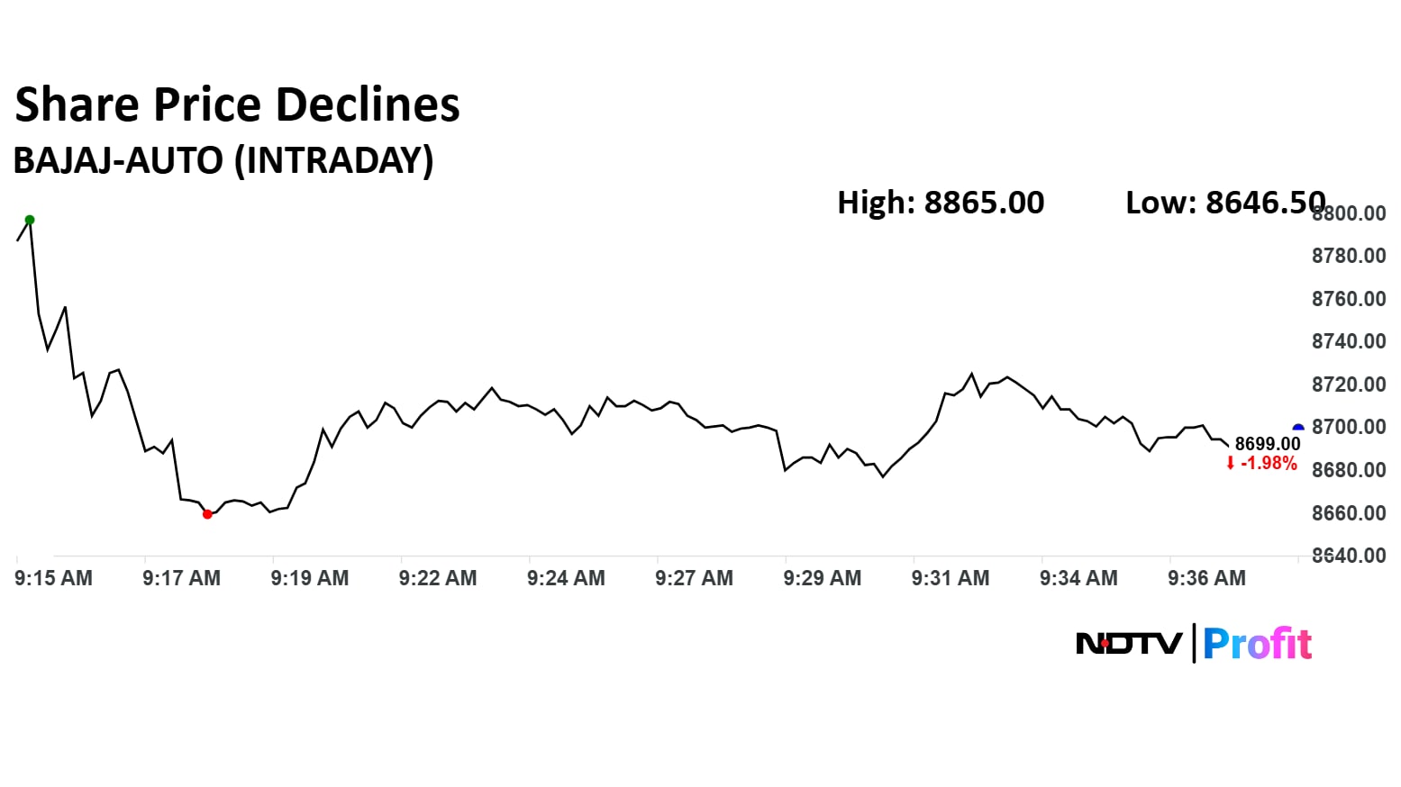 Bajaj Auto Ltd.'s share price declined 2.57% on Friday, even as the firm reported growth in the fourth quarter of fiscal 2025.
