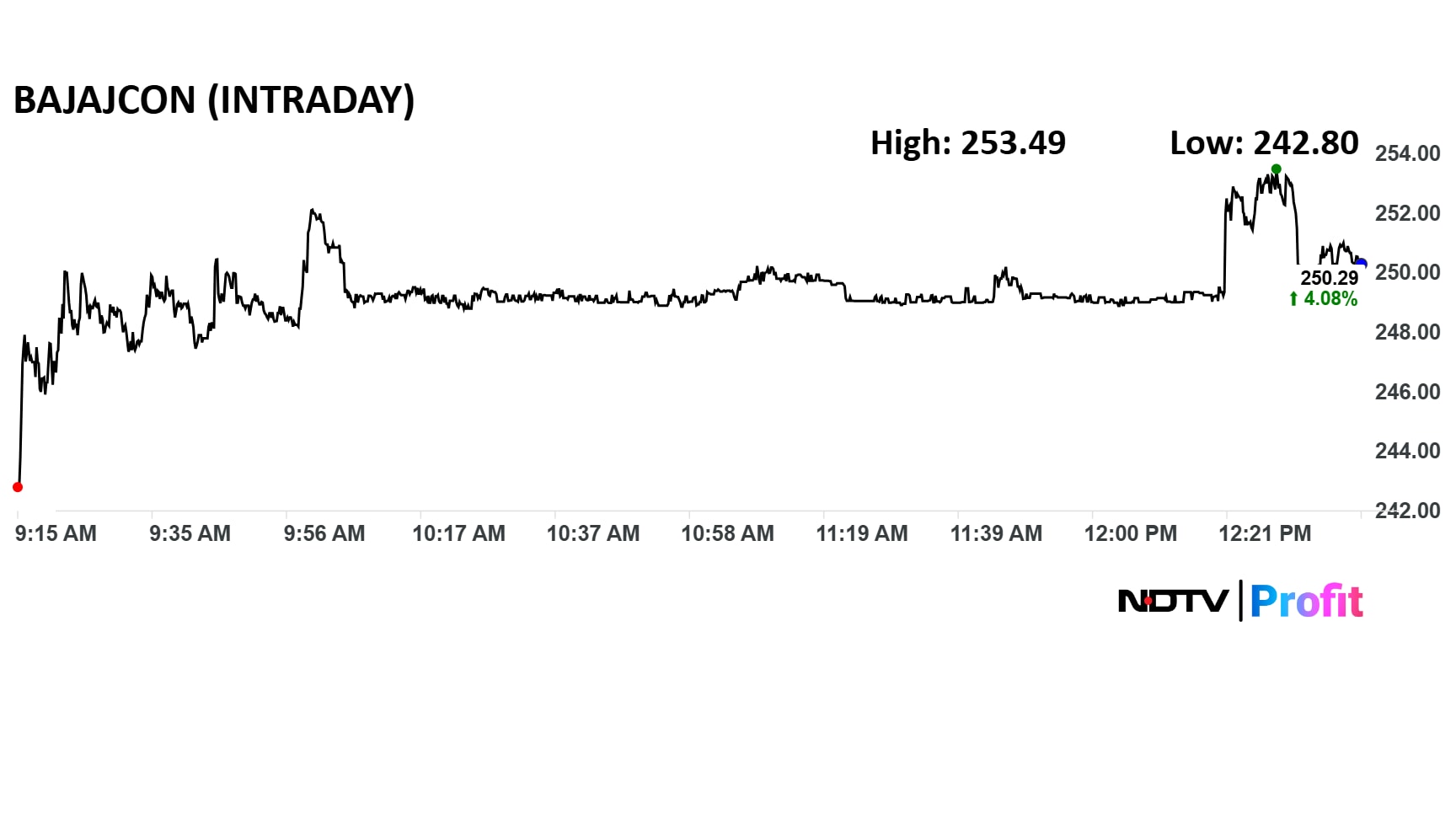 Bajaj Consumer share was trading 4% higher at Rs 250.29 as of 12:40 p.m. after the announcement.