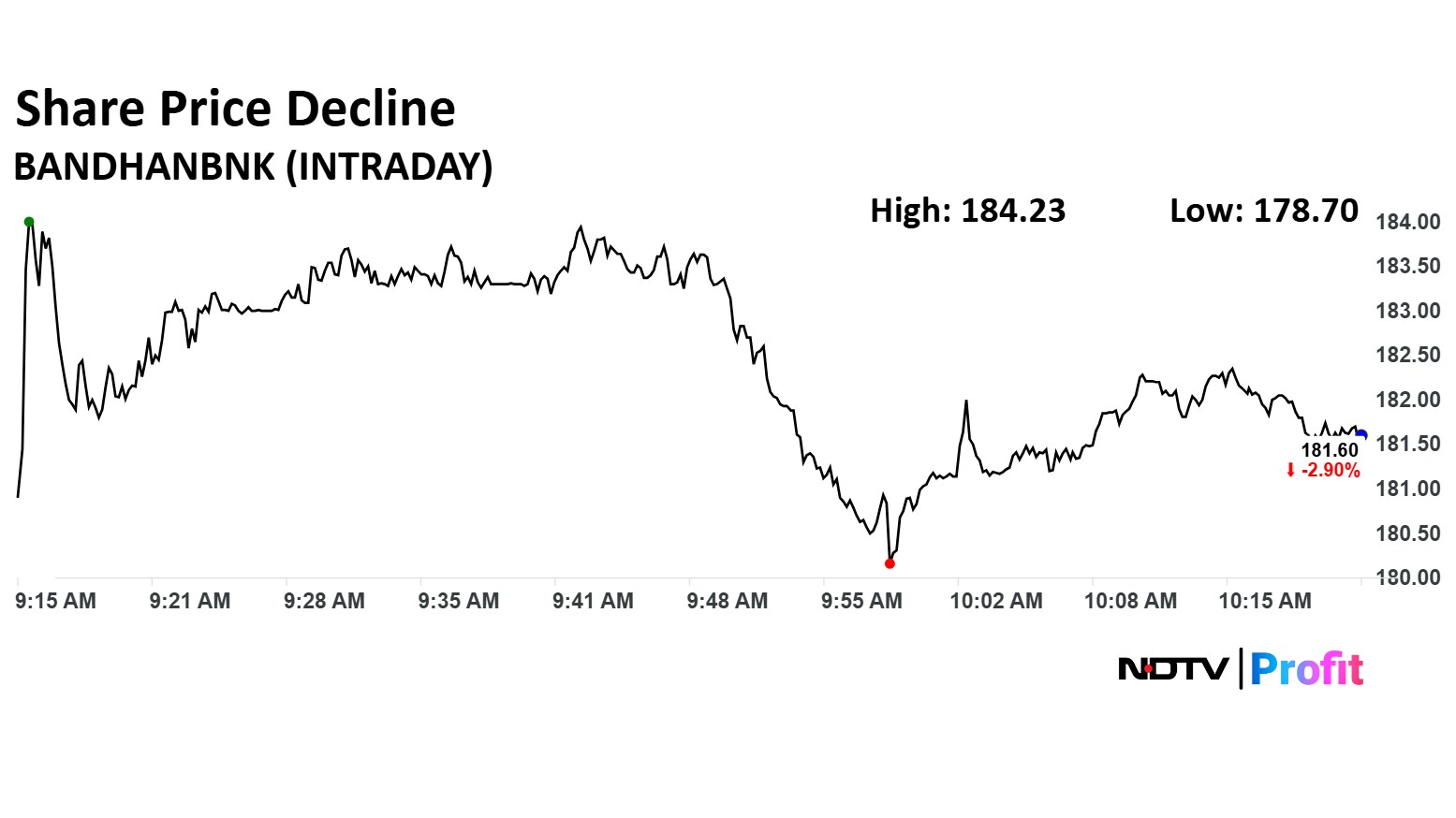 Bandhan Bank Ltd.'s stock came under pressure on Monday, falling 4.45% in early trade, after the lender reported lackluster first-quarter results for FY26.