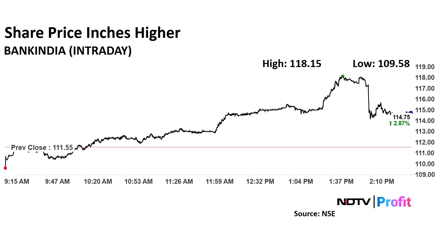 Shares of the lender rose as much as 5.96% to Rs 118 apiece. They pared gains to trade 2.79% higher at Rs 114.66 apiece, as of 2:40 p.m. This compares to a 0.34% down in the NSE Nifty 50.