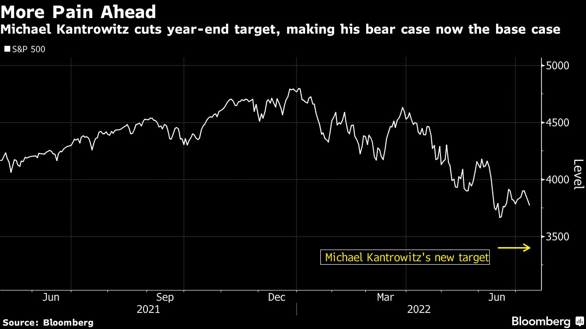 Kantrowitz is the latest Wall Street strategist rushing to revise market outlooks as the six-month stock rout has shown no signs of abating and recession talk is mounting. Among professional forecasters tracked by Bloomberg, he's one of the first to predict lower share prices till year's end.