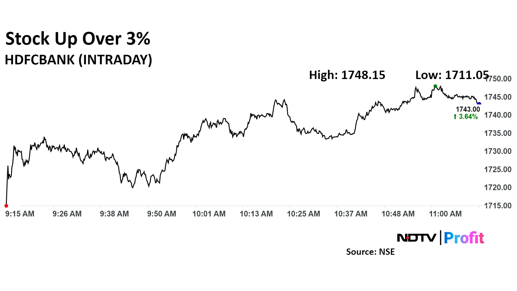 The scrip rose as much as 3.93% to Rs 1,748 apiece. It was trading at the same level as of 11:03 a.m. This compares to a 0.05% decline in the NSE Nifty 50.