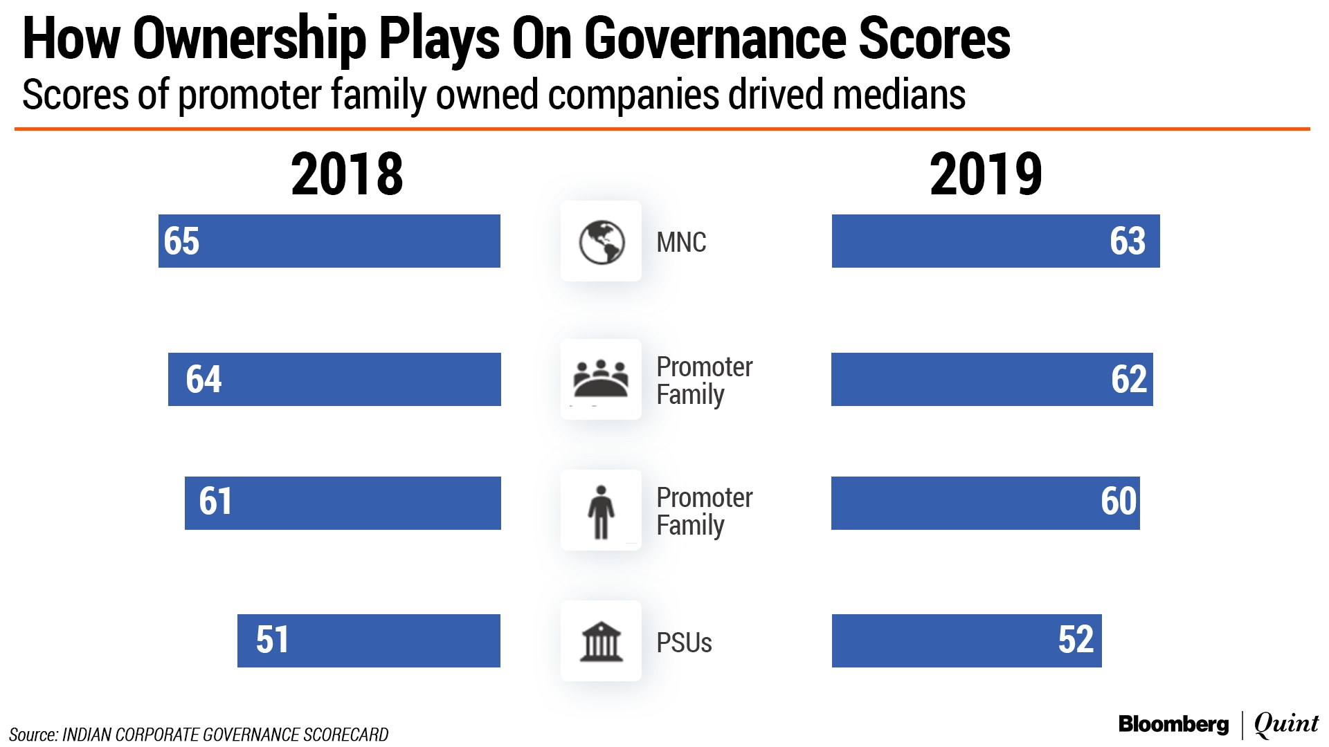 The institutionalisation of governance practices has led to greater stability of scores for the larger listed companies. In the BSE 100, institutionally owned and widely held companies have better governance scores. In comparison, public sector undertakings continue to fare poorly, the report said.