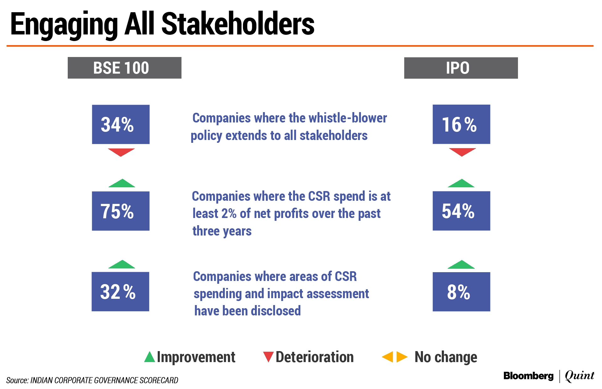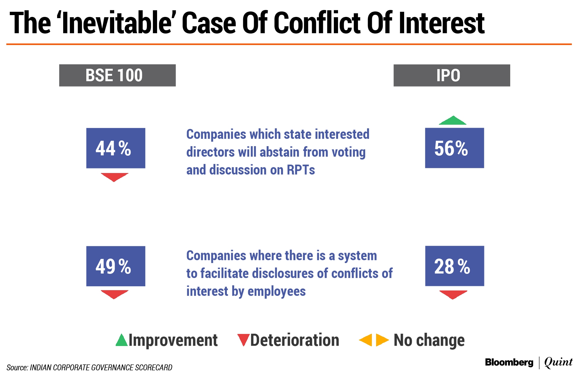 • Just 49 percent companies in the BSE 100, and 14 of the 50 IPO companies have a robust conflict of interest policy covering all employees.