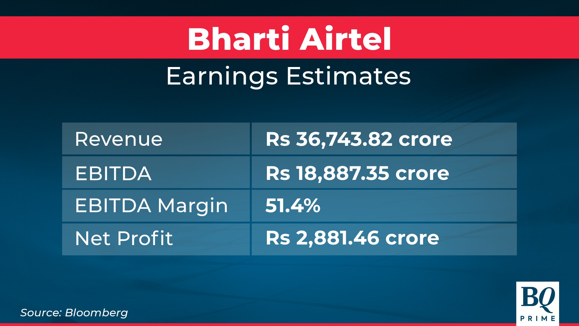 The Sunil Mittal-run Bharti Airtel will see its consolidated revenue rise in lower single digits sequentially, according to estimates of analysts tracked by Bloomberg. However, the homegrown telecom player will see its net profit almost double quarter-on-quarter as profitability remains high, the estimates show.