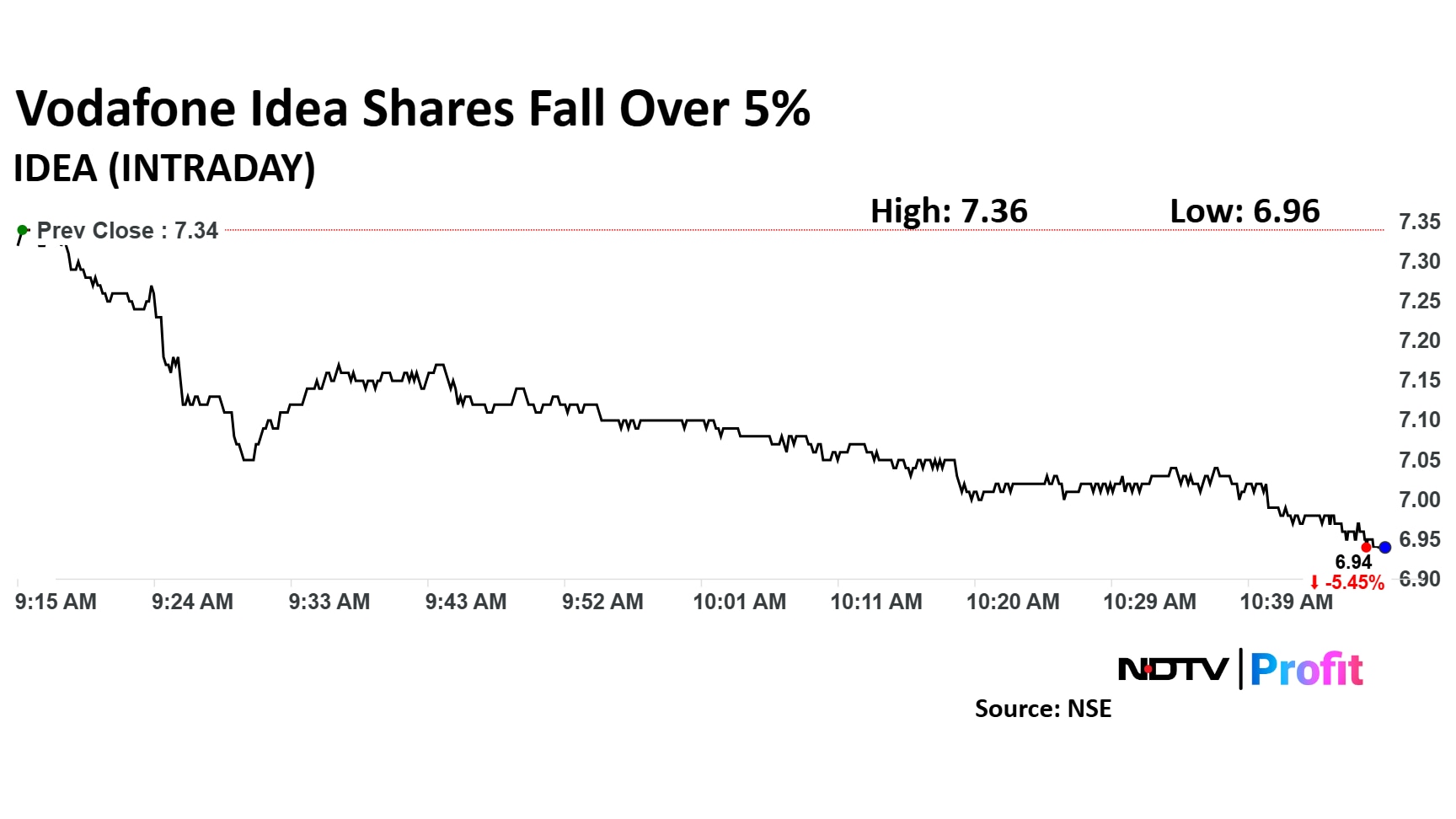 Vodafone stock rose as much as 4.90% during the day to Rs 6.98 apiece on the NSE. It was trading at its intra-day low, compared to a 0.20% decline in the benchmark Nifty 50 as of 10:44 a.m.