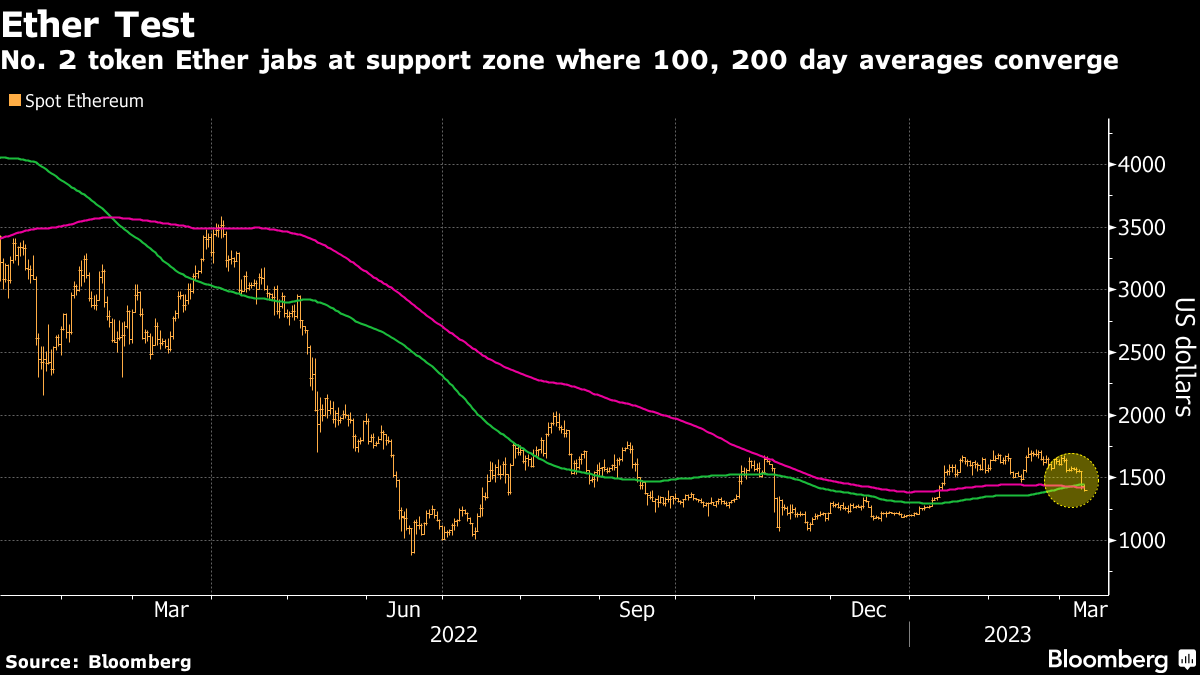 Sentiment in digital-asset markets as a whole has taken a knock from the demise of Silvergate's payments platform for crypto firms, as well as Chair Jerome Powell's stance that the Federal Reserve is likely to take rates higher than previously anticipated.