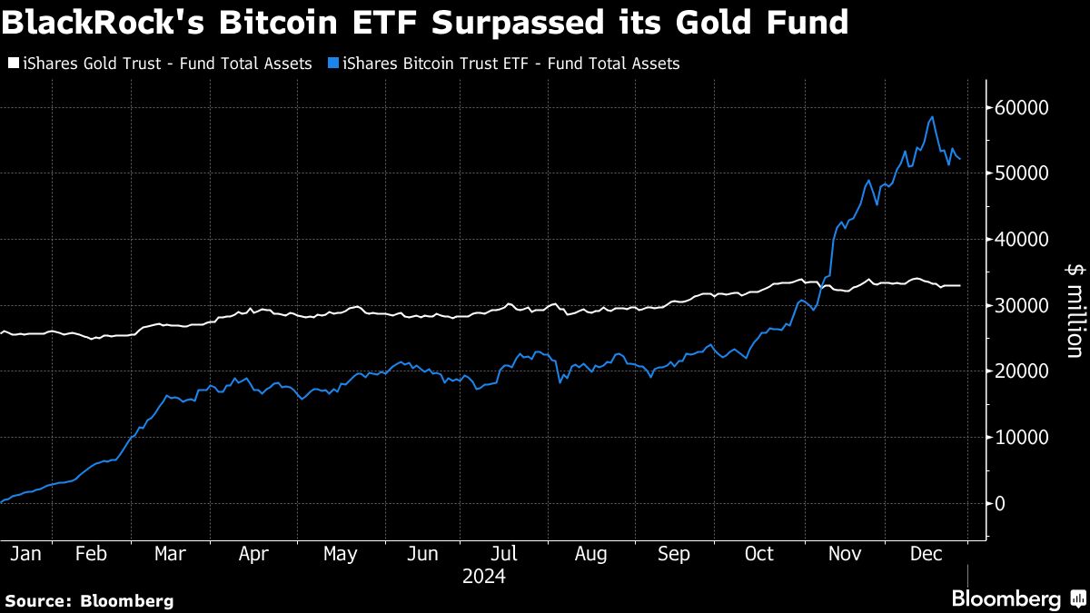 IBIT now holds more assets than BlackRock's gold ETF, the second-largest gold fund globally, even after that fund also saw strong demand this year. Investors poured in a net $37 billion, the third-strongest inflow to a fund this year.