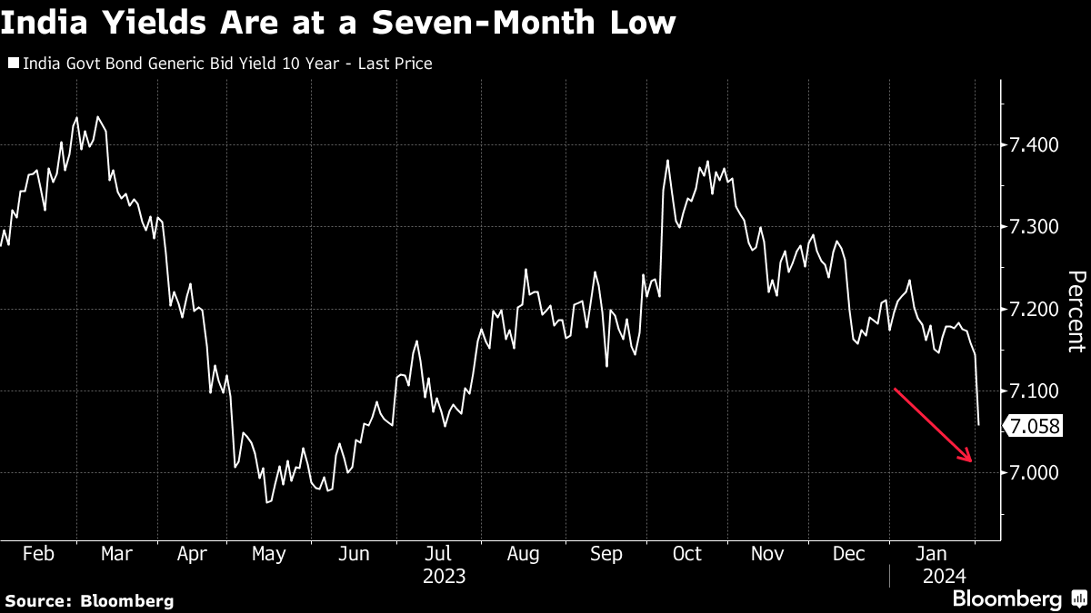Yields slid to a seven-month low last week after New Delhi unveiled a borrowing plan that was below market estimates. That's strengthening the case for the Reserve Bank of India to shift from the withdrawal of accommodation to a neutral stance in its Feb. 8 meeting or the next, according to traders.