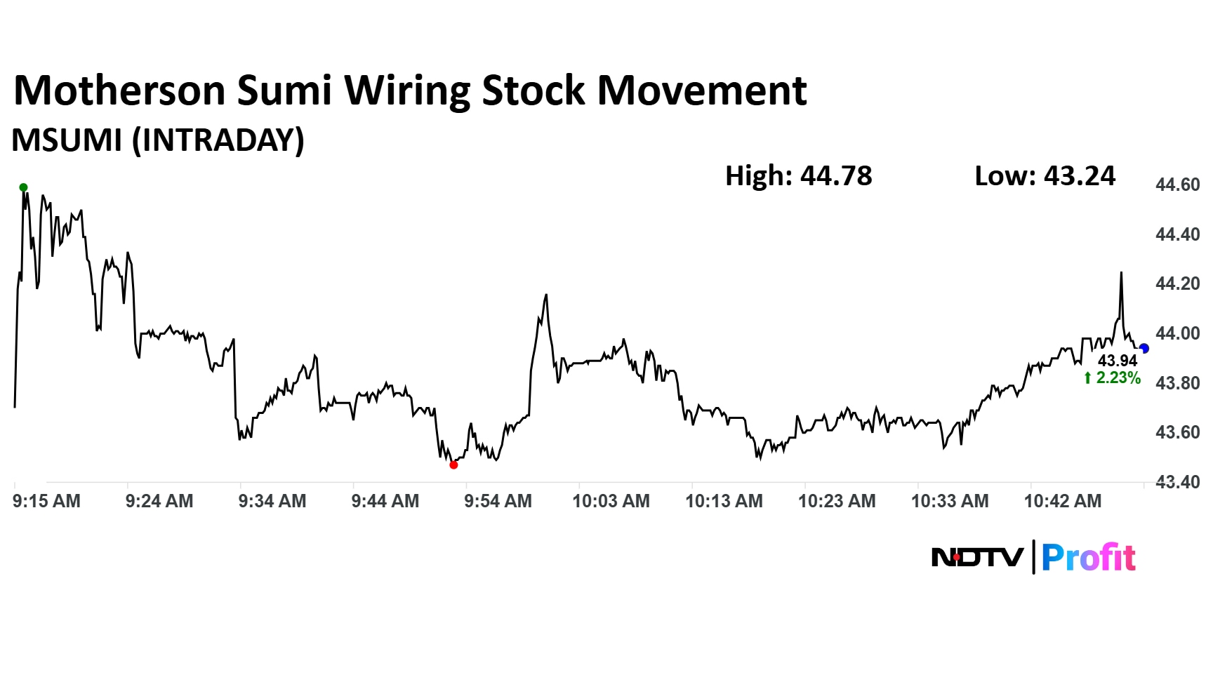 Motherson Sumi Wiring was up 2.3% at Rs 43.94.