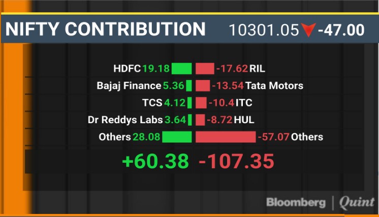 • The NSE Nifty 50 Index declined 0.45 percent or 47 points to 10,301.